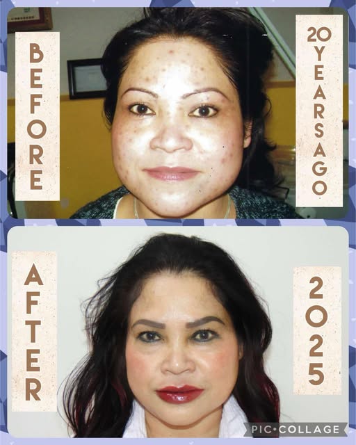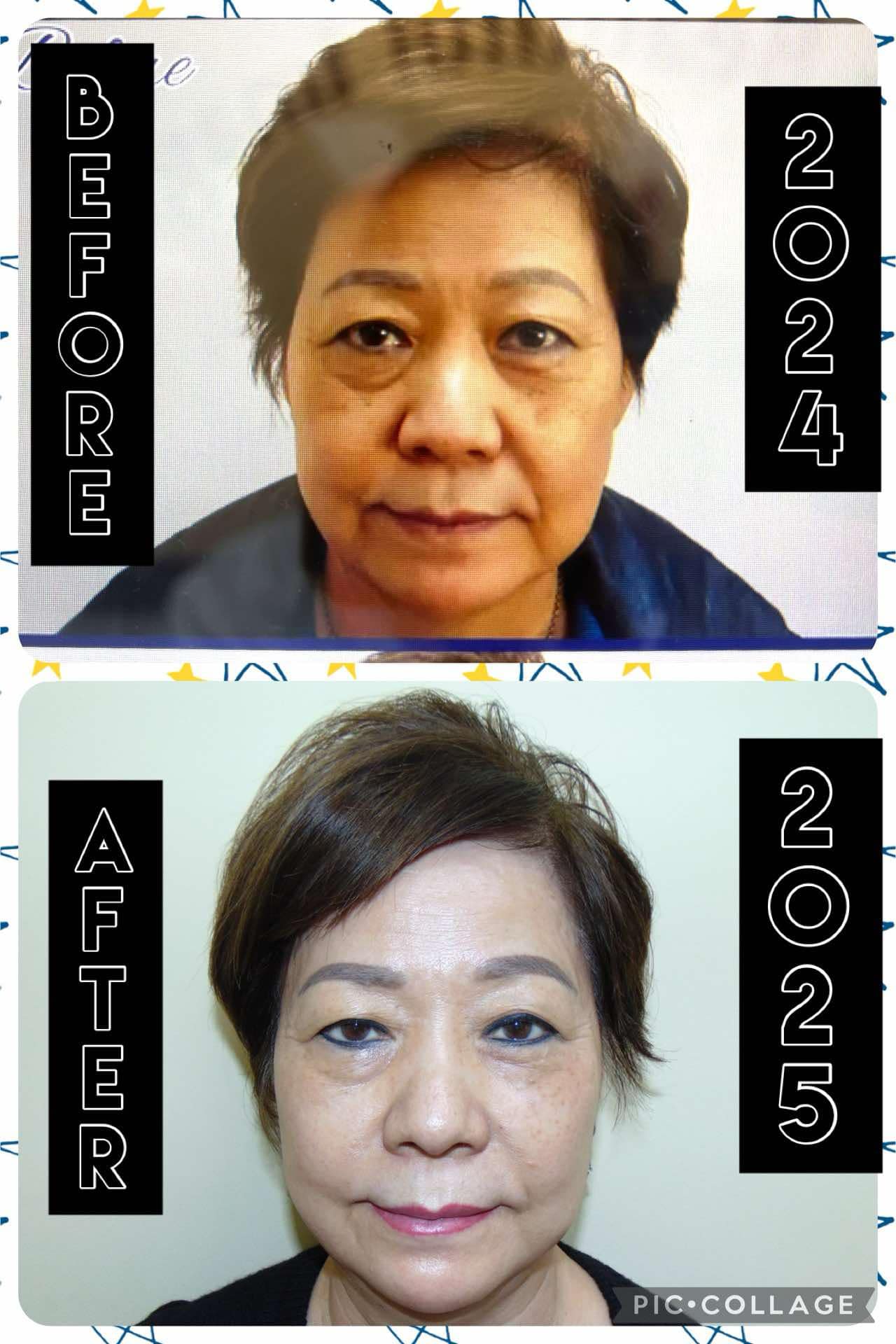 AFTER: THIS IS HER NOW. AFTER SHE DID THE NATURAL HERBAL FACE TREATMENT. JUN DID PERMANENT EYEBROWS AND PERMANENT LIPS.